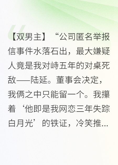 然后展示给林晚——屏幕上正是她偷偷安装摄像头的画面!“你为什么要制造这种假象?